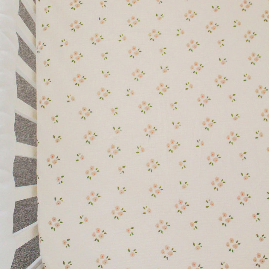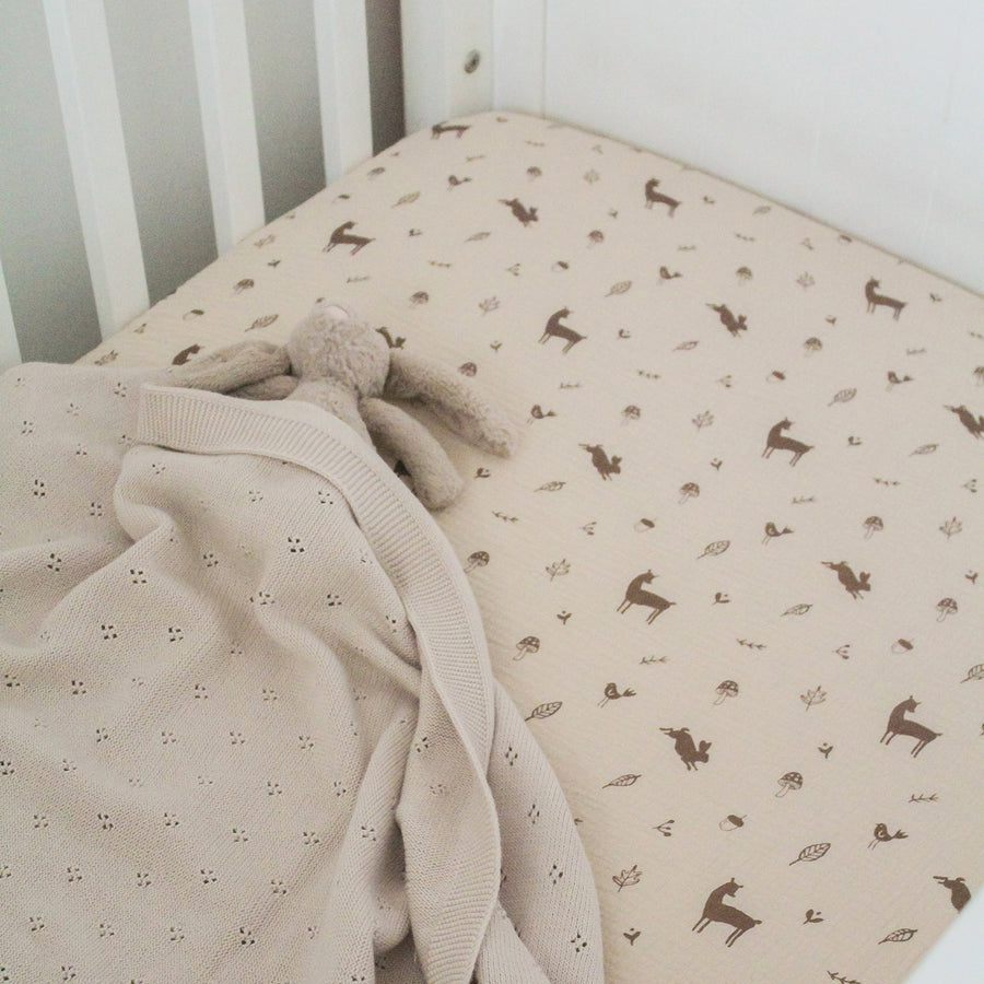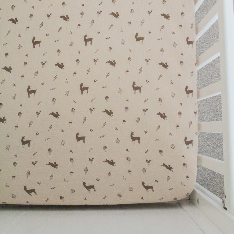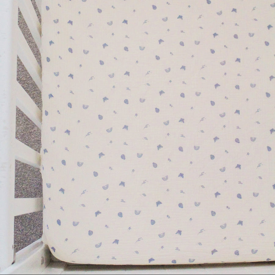 This fitted cot sheet is made from GOTS certified organic cotton muslin. Muslin is soft, lightweight, and breathable, making it ideal for a cot sheet.